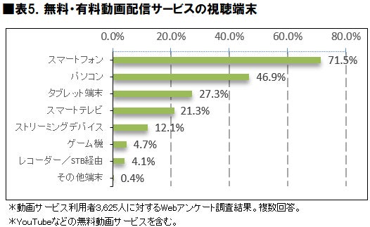 ■スマホによる動画サービス利用者は71.5%へと増加、パソコン利用者は減少