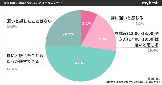 ■75%の利用者が格安SIMに対して通信速度の遅さ感じるも、それを許容できる人が半数近く