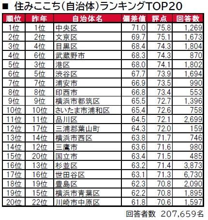 1位は、4年連続で中央区、2位も4年連続で文京区という結果になっている。3位は、昨年は4位の目黒区。順位変動はあるものの、昨年調査でトップ10入りした自治体が、今回もトップ10にランクインする結果となっており、大きな変動はなかった。