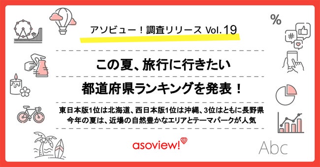 休日の便利でお得な遊び予約サイト「アソビュー!」(URL:https://www.asoview.com/、以下:当社)を運営するアソビュー株式会社が行った「この夏のおでかけについて」の全国調査(n=6,518)をもとに、「この夏、旅行に行きたい都道府県」を策定した。