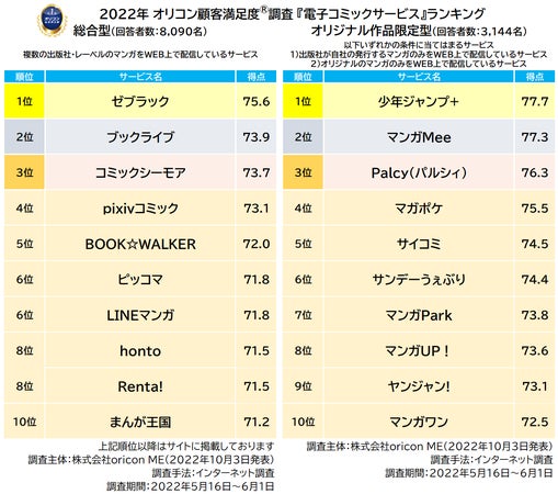 《調査概要》 2022年 オリコン顧客満足度®調査 電子コミックサービス