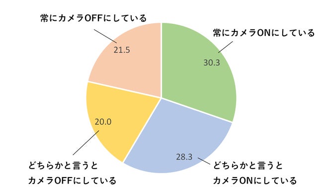 「常にカメラONにしている」が30.3%、「どちらかと言うとカメラONにしている」が28.3%で、“ON派”が58.6%という結果に。“OFF派”の41.5%を上回る主流派ということが分かった。それぞれの理由に耳を傾けてみると、