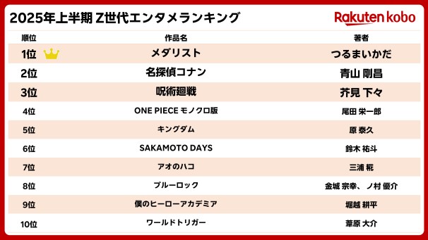 「楽天Kobo電子書籍ストア」では、TVアニメ化作品『メダリスト』が1位となり、メディアミックスが消費を促進している。また、連載31周年の『名探偵コナン』が2位に位置し、長年愛されるコンテンツが世代を超えて支持され続けることで、安定した顧客満足を生んでいることがわかる。