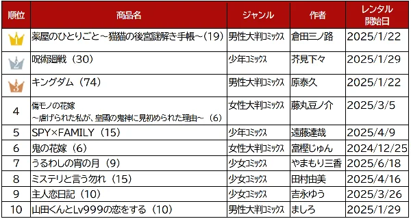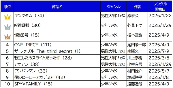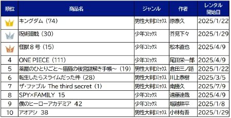 ゲオ2025年 コミックレンタルランキング:https://www.geonet.co.jp/news/55911/