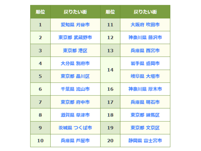 「戻りたい街ランキング2025」発表。刈谷市が1位に