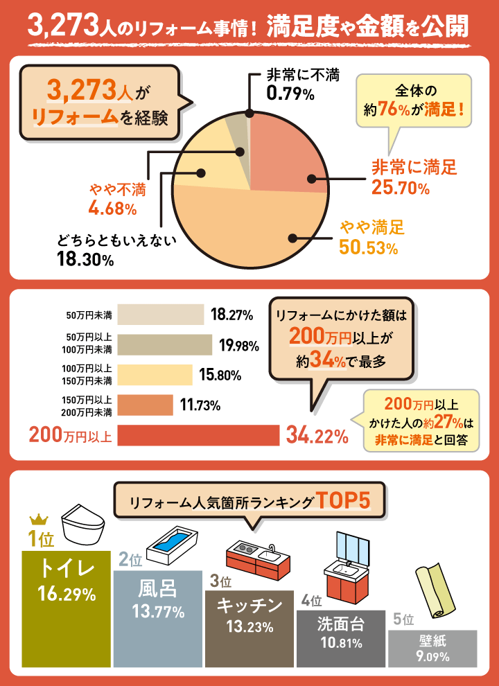 調査名 :リフォーム事情!リフォーム箇所ランキング&満足度や費用