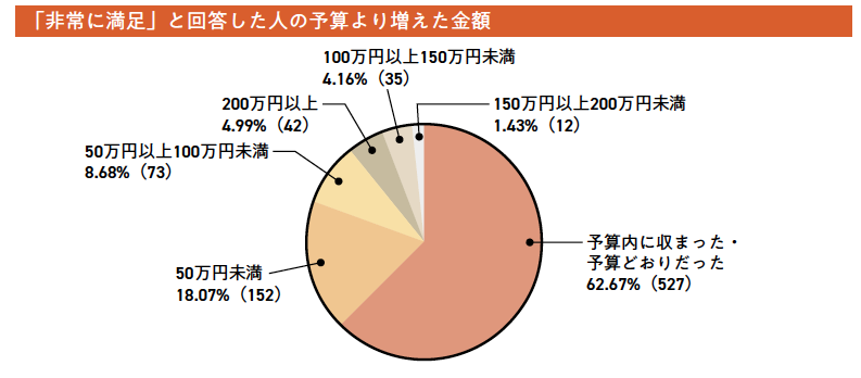 また増額に関しても「非常に満足した」と回答した層の集計を見ると、「予算内におさまった・予算通りだった」が6割を超えている。