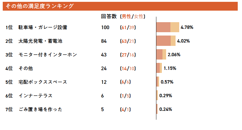 その他の住宅設備では、1位「駐車場・ガレージ設備」4.78%。2位「太陽光発電・蓄電池」4.02%。