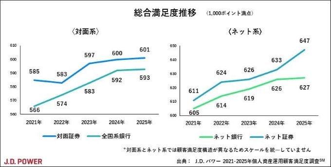 J.D.パワーは2025年7月15日、「2025年個人資産運用顧客満足度調査」の結果を発表した。本調査は、直近1年間の主利用金融機関における個人資産運用に関する顧客の満足度を測定するもので、市場変動が激しい時期にもかかわらず、総合満足度が最高水準を維持し、ロイヤルティも横ばいで推移していることが明らかになった。