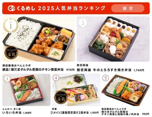 国内最大級の法人向け弁当デリバリーサービス「くるめし弁当」を運営する株式会社くるめしは12月19日、2025年1月から10月までの売上データに基づく「人気弁当ランキング2025」を発表した。出社回帰の流れを背景に、オフィスでの食事体験やコミュニケーション創出の起点として弁当の役割が拡大していることが明らかになった。