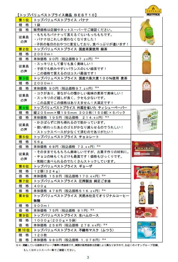 ① トップバリュ商品&トップバリュグリーンアイ商品 BEST10