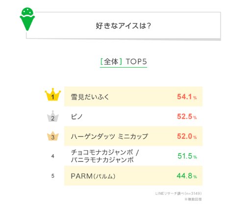 アイス人気1位は「雪見だいふく」。LINEリサーチ